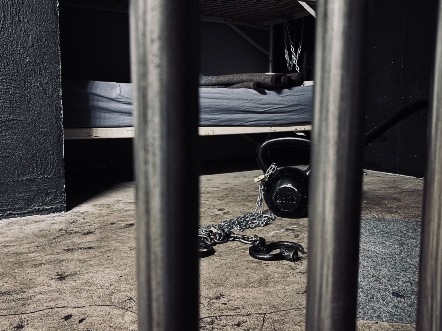- Gefangenen-Zelle 4m x 3m, mit Bett und Käfig, Dunkelhaft möglich.